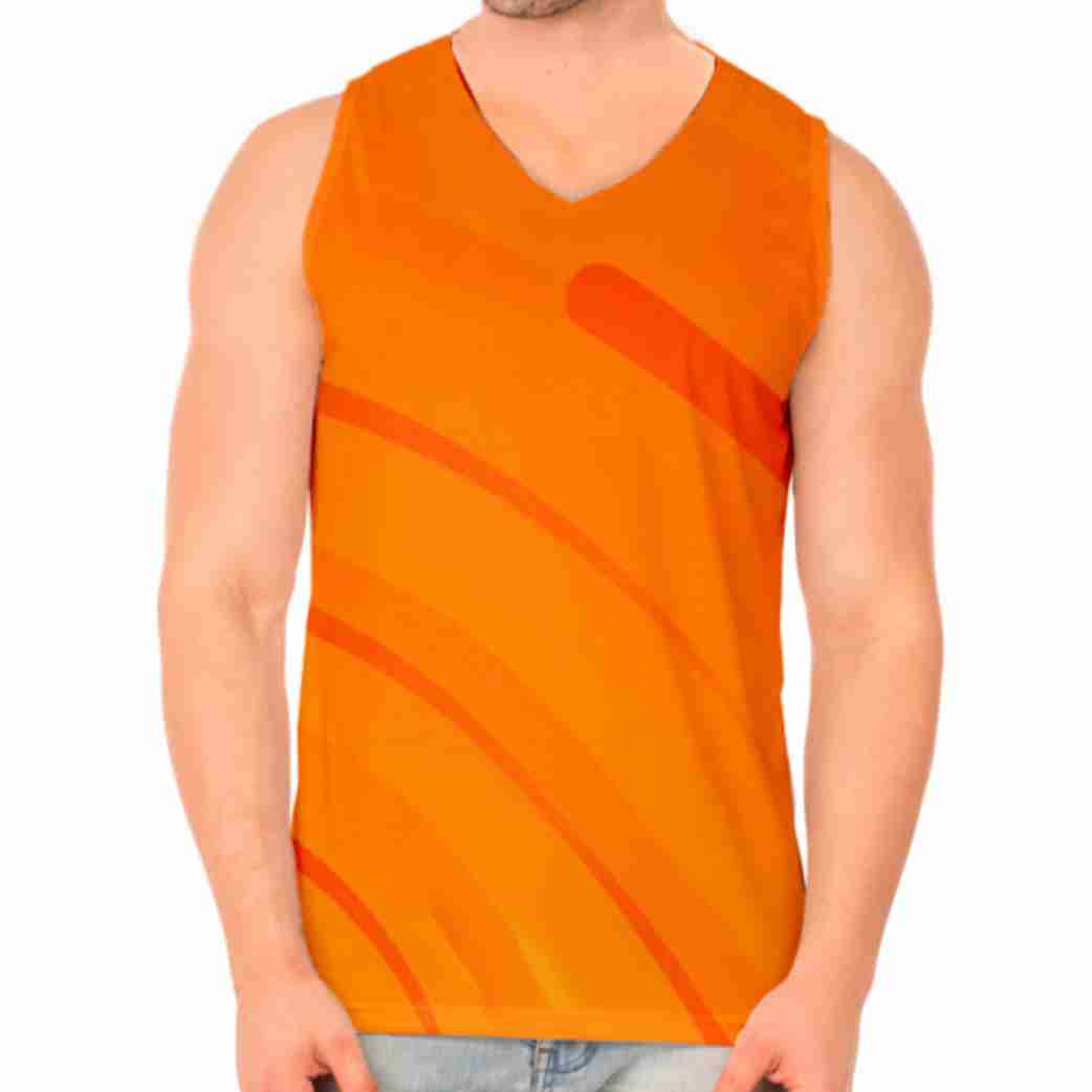 Camiseta com Gola V de Poliéster com Gravação Total – A PARTIR DE 15 UNID.