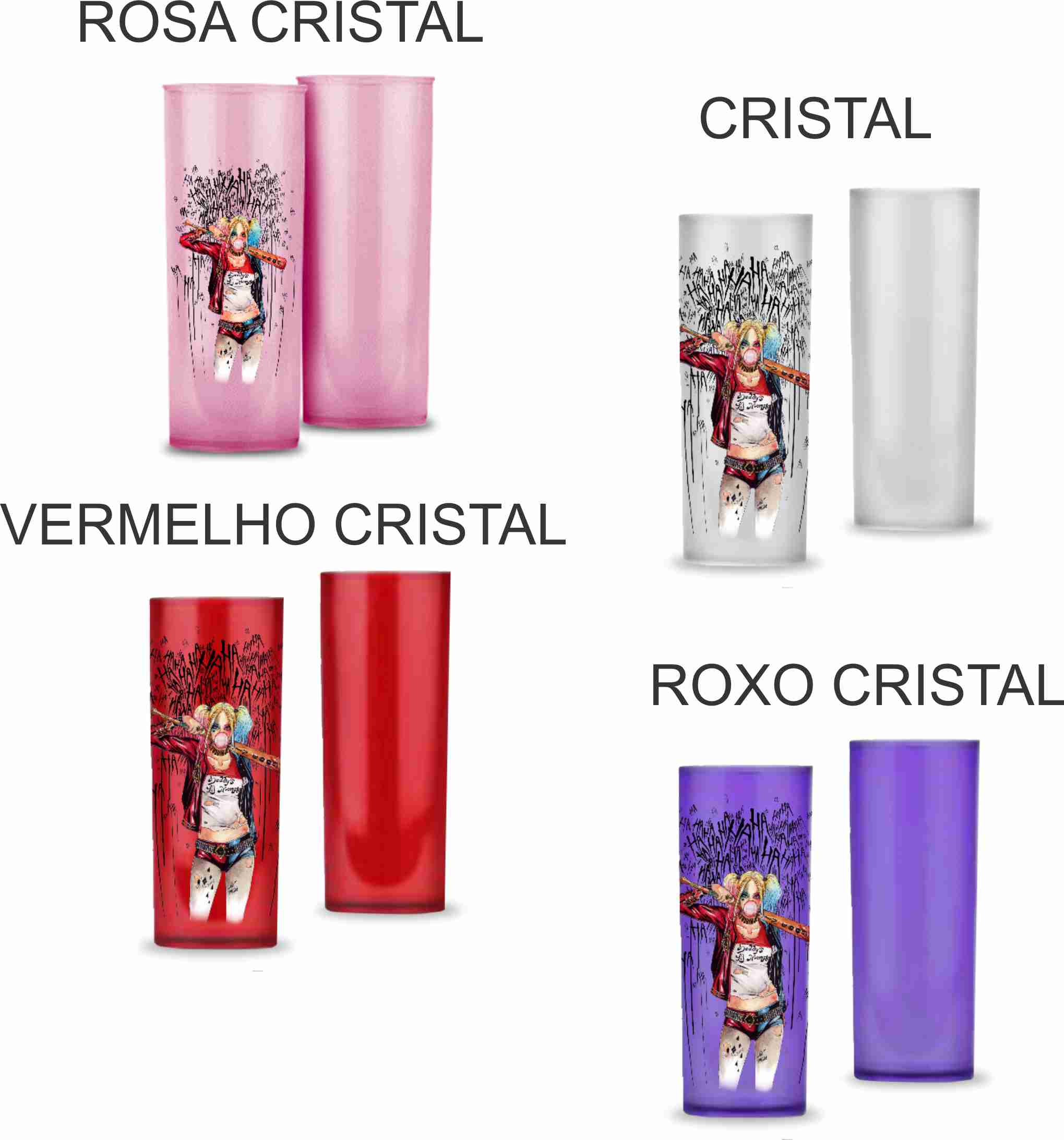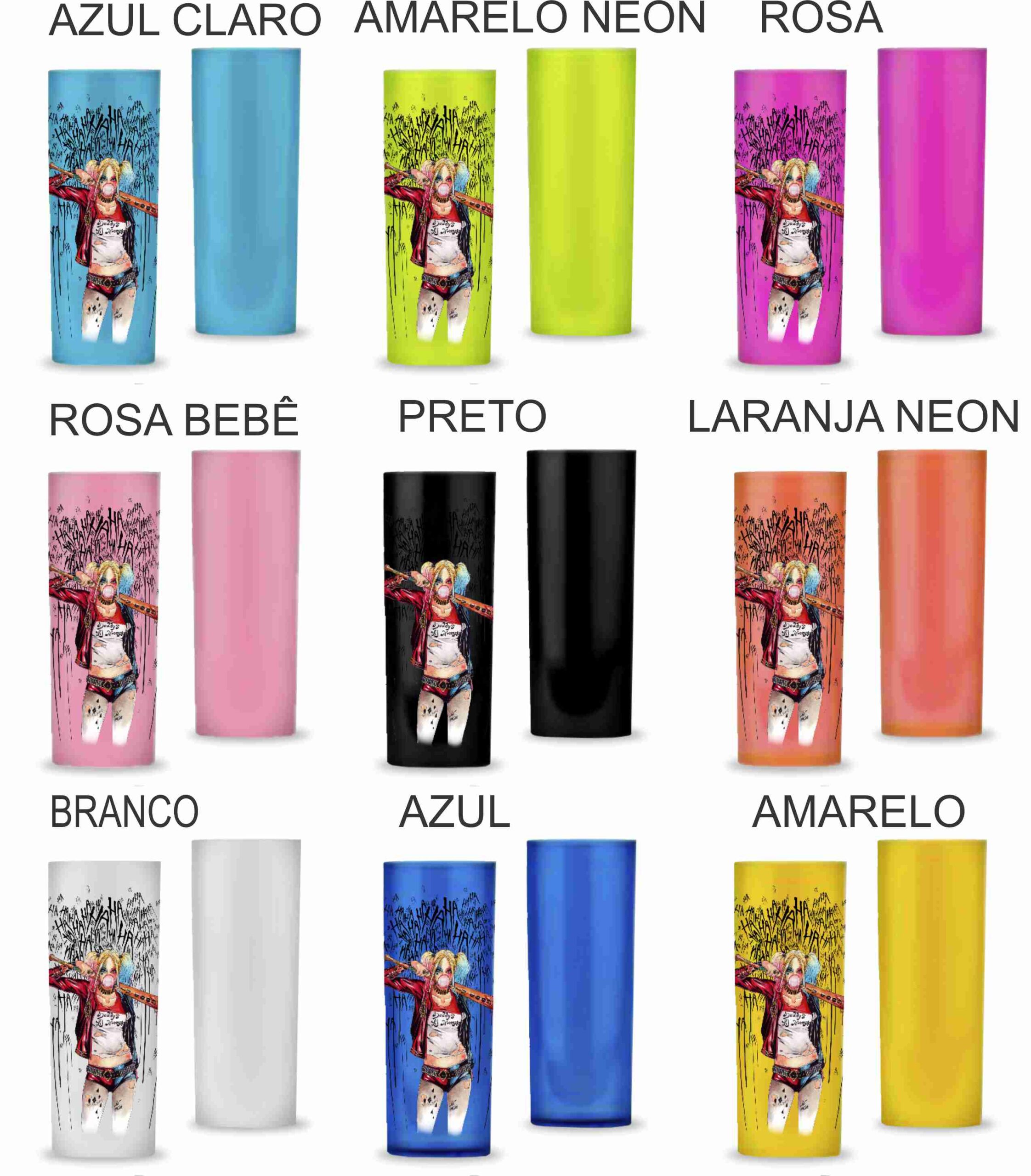 Copo Long Drink de 325 ml, personalizado. Disponíveis em várias opções de cores sólidas, degradê ou cristal.