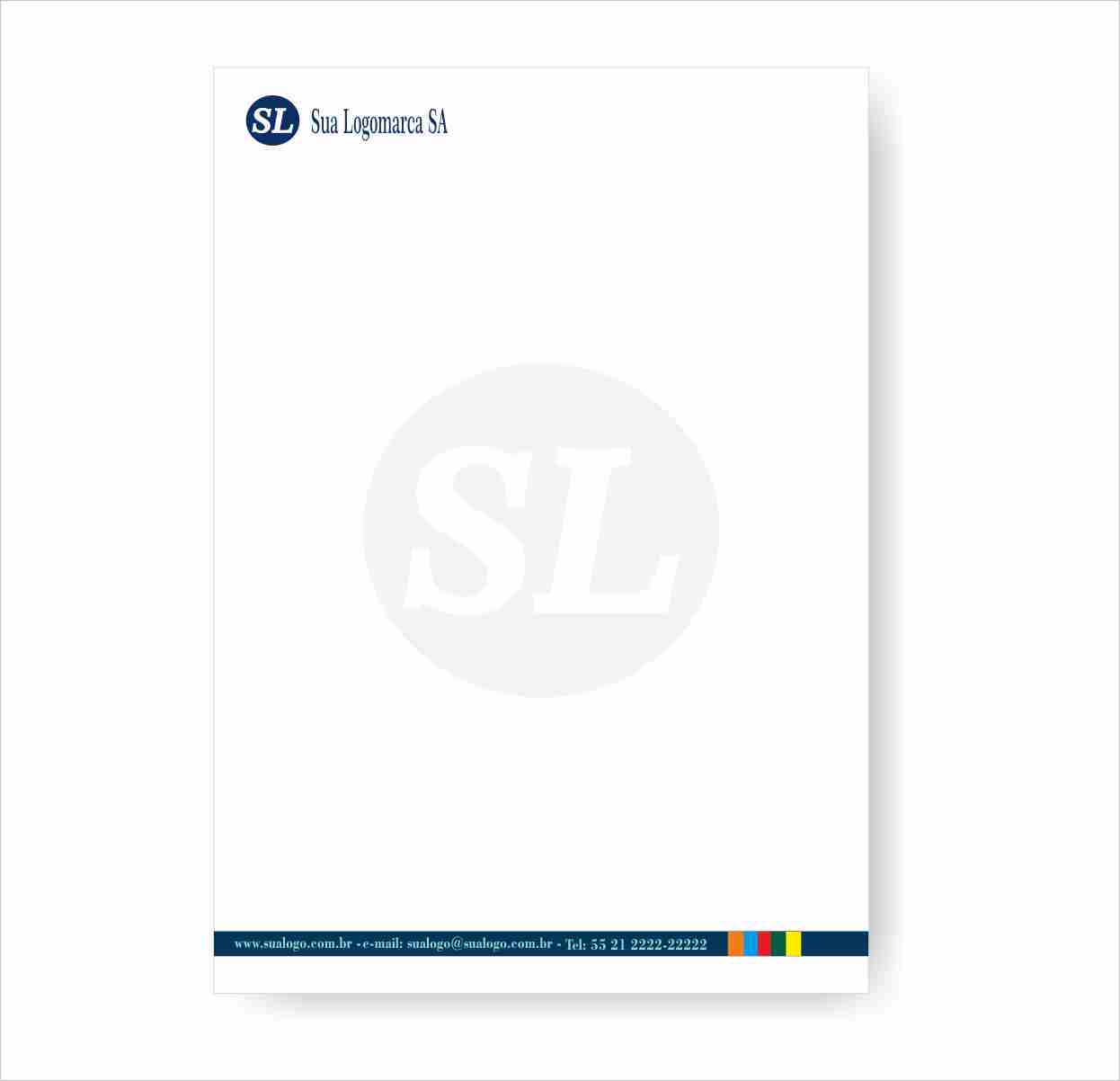Papel timbrado tamanho A4, cofeccionado em papel offset 90g com impressão 4/0 cores.